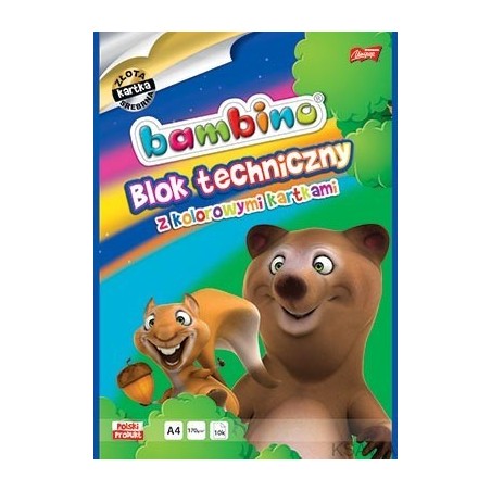 BAMBINO Blok techniczny z kolorowymi kartkami wraz ze złotą i srebrną kartką 10k./A4 - mix wzorów